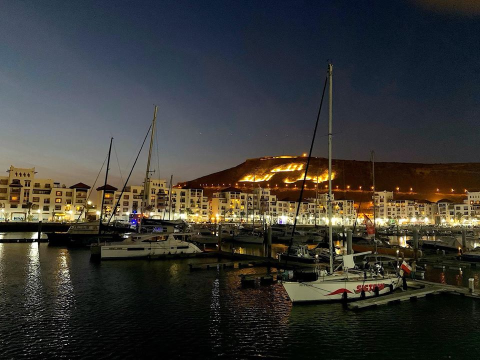На самом деле эта светящаяся надпись над мариной Агадир означает аналог «За бога, царя и отечество» — «Бог, отечество, король».