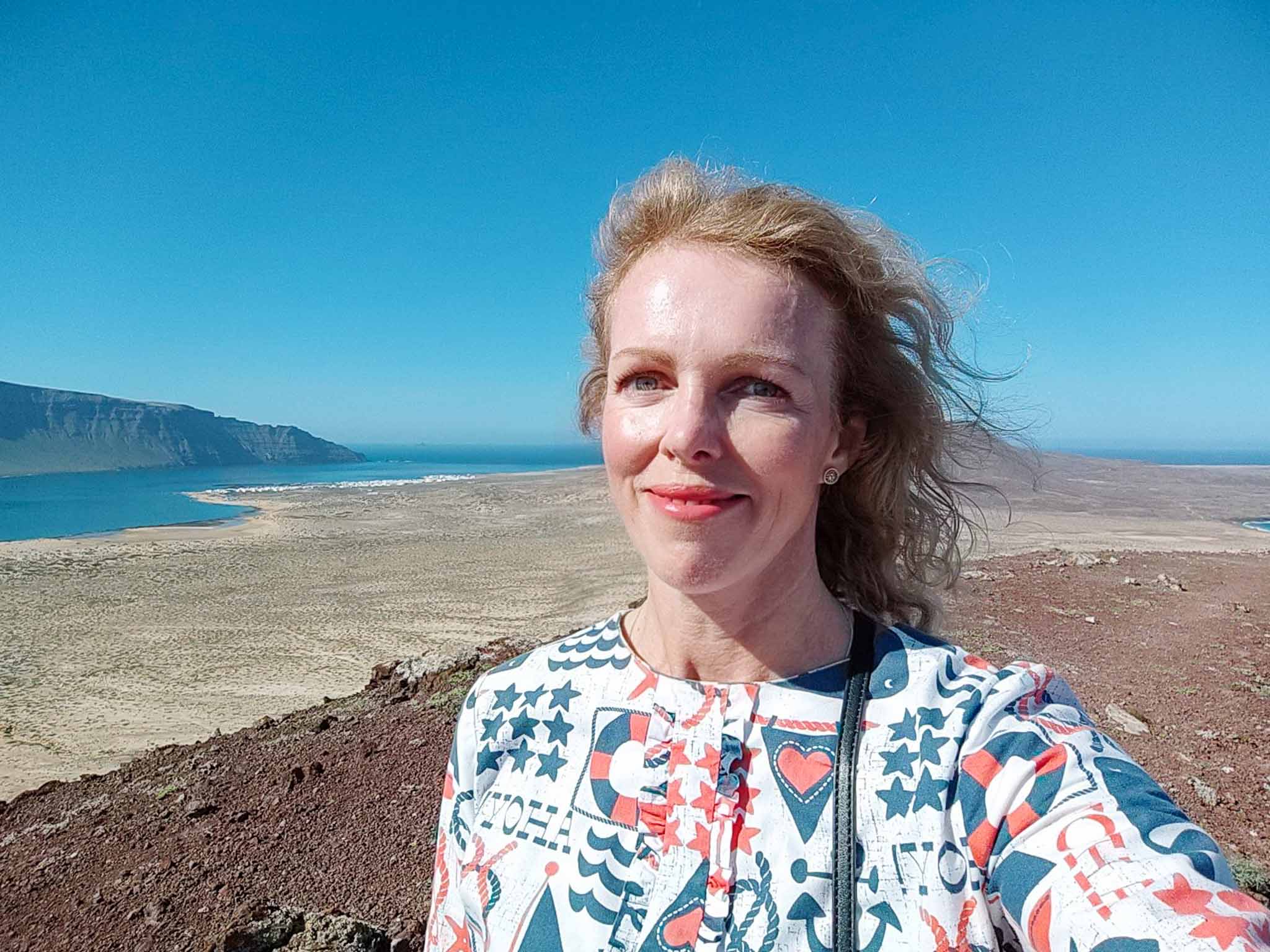 Сначала я обошла бухту на сапе, изжарилась. Чтобы охладиться, прыгнула в воду и поплавала вокруг катамарана. Водичка отличная, +22. Рыбы просто тучи – заповедник же. Затем высадилась на берег и поднялась на Жёлтую гору – давно на неё смотрю с якорной стоянки. Гора как гора, всего 175 м. Снизу куда желтее, чем сверху. Вдохновившись подвигами недавнего знакомого, который за 3 дня сделал для себя 3 айронмена, потопала пешком на самый высокий вулкан Грасиосы, Agujas Grandes, 266 м. Поднималась с неправильной стороны, с риском для жизни, по сыпухе, цепляясь руками и ногами. Спускалась проще – сверху виднее, где лучший спуск.
