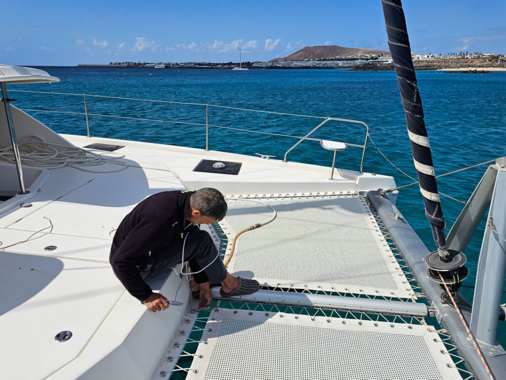 Марат перетянул сетку на носу и поменял зеркала в туалетах. С зеркалами он меня просто спас, я по ошибке заказала слишком тонкие и Марат придумал, как их смонтировать на место старых. Каждый год мы что-то обновляем в нашем плавучем доме, и он становится только уютнее. Вся наша семья по очереди перенесла какой-то странный вирус, когда день-два держится жар, слабость и ломота во всём теле, при этом нет ни насморка, ни кашля, ничего. Судя по всему, распространённая сейчас на Лансароте болезнь. Я болела последней и решила дать себе отдых, всласть посидела дома и принялась шить себе юбку и Яне платье. Сейчас шитьё пришлось забросить, завтра промежуточный экзамен по испанскому, надо заниматься.