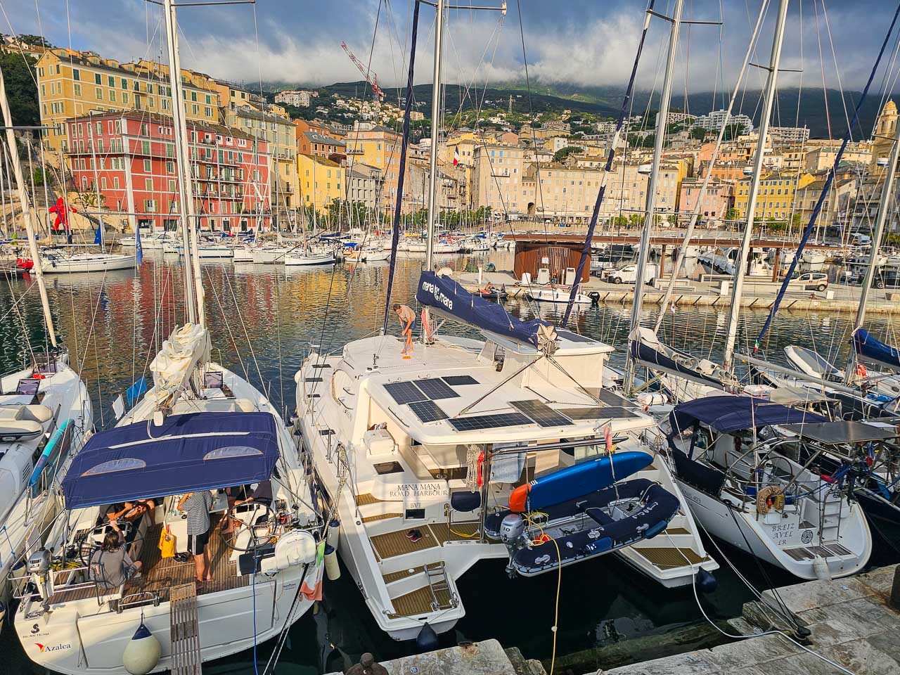 На Эльбе мы с Шелли пошли гулять по лесу и встретили кабана, напугавшего нас рыком. Странная идея была в 1963 году завезти на остров кабанов с целью охоты при отсутствии у них естественных врагов. Расплодились и отравляют жизнь местным и туристам. В последний день на Эльбе мы зашли для купания в бухту Fetovaia, красивое место. Обещанный ветер не включили и мы помоторили на Корсику. В Бастии провели два дня: на якоре под цитаделью, затем в старом порту и на якоре внутри порта. С практической точки зрения, стоянка в старом порту, может, и не самая удачная, узко и толком не помыться, соседи ругаются. Но зато как же красиво! Обожаю стоять под крепостной стеной в окружении старинных зданий и церквей, ресторанов и сувенирных магазинов. По структуре порт Бастии похож на порт в Ницце, только миниатюрнее. В этом году порт модернизировали, обновив или отремонтировав все стенки. В цитадели, нависающей над портом, во дворце Губернатора интересный музей с выходом к бастионам.