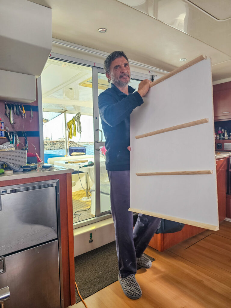 Марат модернизировал шкаф в нашей каюте, которым он удлиннял спальное место Яны лет 8 назад. Яна продолжает расти и остро встал вопрос в хранении её вещей. Я купила на складе несколько отрезов древесины, а Марат сложил из них полки. Кроме того, Марат починил мою швейную машинку, которая служит мне уже 25 лет, и не пришлось её везти в мастерскую. Заменил несколько ламп в салоне на новые, выписанные на Али Экспресс. По вечерам стало намного светлее и приятнее. Снова начал заниматься испанским с Дуолинго, я продлила ещё на год семейную подписку.